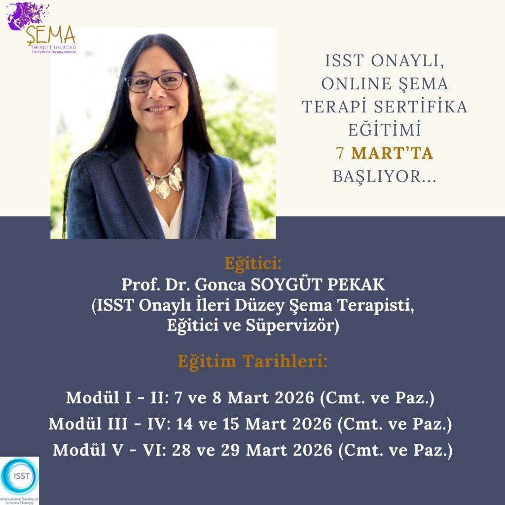 ISST Sertifikasyon programına ilişkin faaliyetler, Uluslararası Şema Terapi Sertfikasyonu temel düzey programı ve süpervizyonları kapsamında Prof. Dr. Gonca Soygüt tarafından yürütülmektedir.